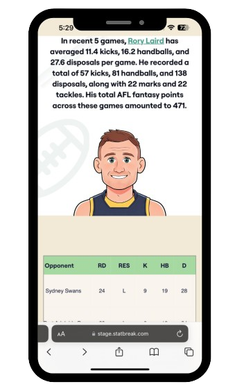 "As an AFL Fantasy player, I know many of us probably spend way too much time (than we'd care to admit!) on researching player stats. Having a site that will put the data in front of me instantly, will be a huge time-saver!"